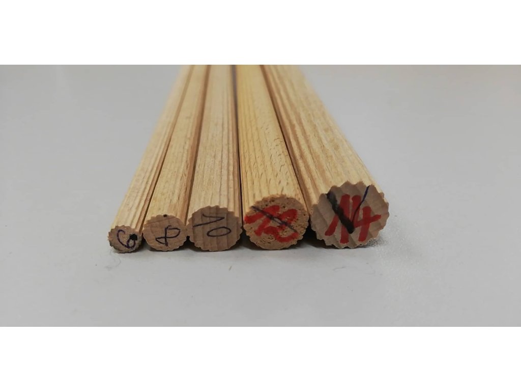 Buková tyč, průměr 12mm, délka 1000mm, rýhovaná.