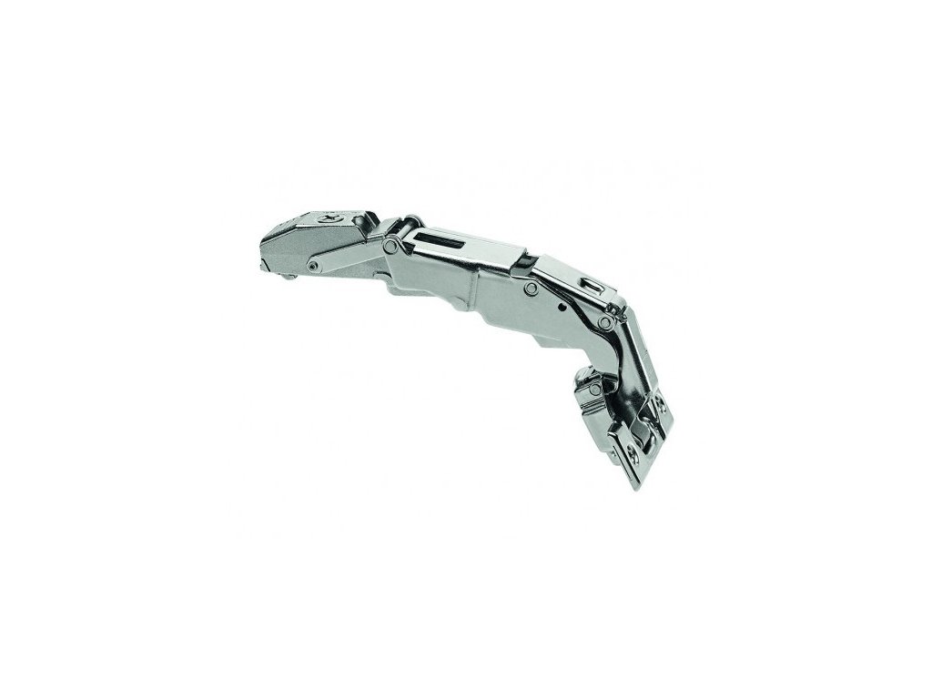 Závěs Clip Top naložený 155°, s nulovým přesahem, při otevření dvířek je čelo vyneseno profil korpusu, vhodné do potravinových skříní s vnitřními zásuvkami (nepřekáží při výsuvu košů a zásuvek).