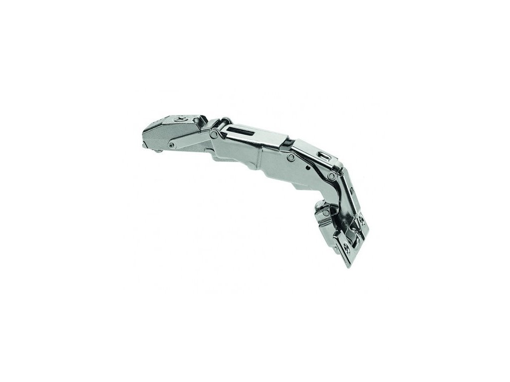 Závěs Clip Top naložený 155°, s nulovým přesahem, s Blumotion (tlumením), při otevření dvířek je čelo vyneseno profil korpusu, vhodné do potravinových skříní (nepřekáží při výsuvu košů a zásuvek).