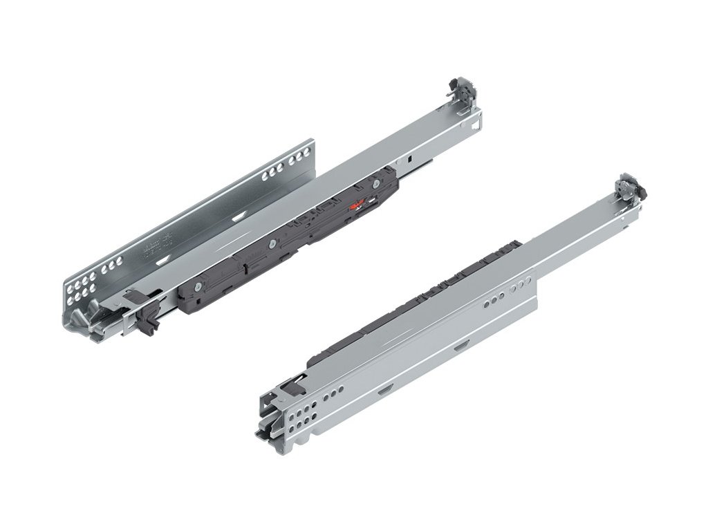 MOVENTO BLUMOTION S je skrytý (spodní) plný výsuv pro celodřevěnou tlumenou zásuvku (tlumení je již integrováno uvniř výsuvu) i pro bezúchytkový systém (TIP-ON BLUMOTION). U systému s TIP-ON BLUMOTION jer nutno doplnit o správný modul dle hloubky a hmotnosti celé zásuvky (včetně čela a obsahu zásuvky). Pro správný chod systému TIP-ON BLUMOTION je nutné doplnit synchronizaci (hřídel 282277). U obou typů zásuvek je nutné dodat čelní kování (159816+159817).
