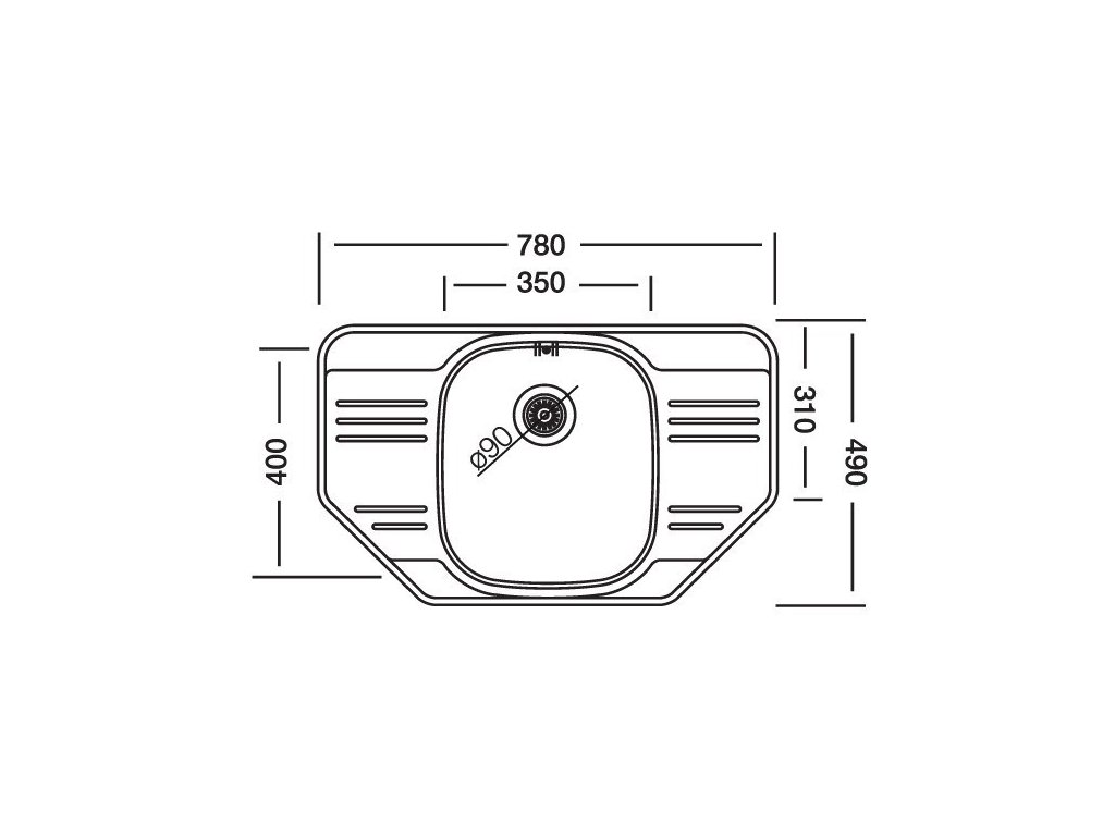 Rozměr: 780*490mm (rozměr vaničky 350*400mm), hloubka dřezu 180mm, výpusť 3 1/2 se síťkovou výpustí.
