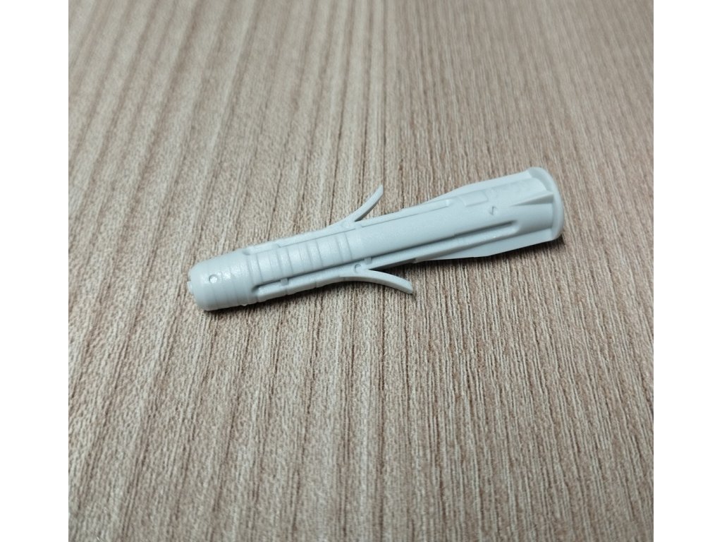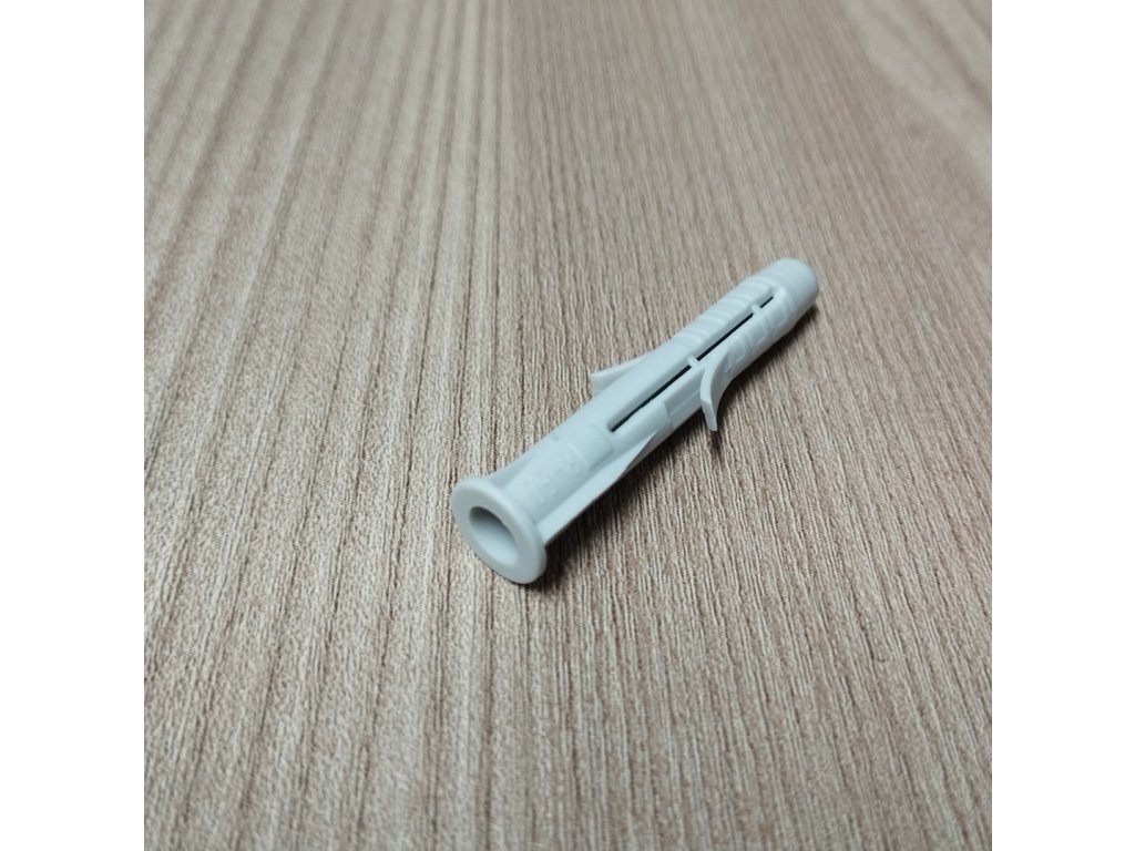 Hmoždinka univerzální, pro lehké montážní prvky, jako je např. montáž polic, zrcadel, lišt, atd, s nákružkem, který zabraňuje prokluzování ve vyvrtaném otvoru. Díky 4-dínému tvaru se přizpůsobí každému materiálu- univerzální využití. Křížovitý a kvádrovitý vnitřek hmoždinky zajišťuje bezpečnost při montáži, dlouhá rozpínací část zajišťuje včasné zkroucení a rozpínání hmoždinky a tím je vhodná i pro duté materiály (vrtat bez příklepu), navíc díky drážkám a hrotu nedochází k protáčení.