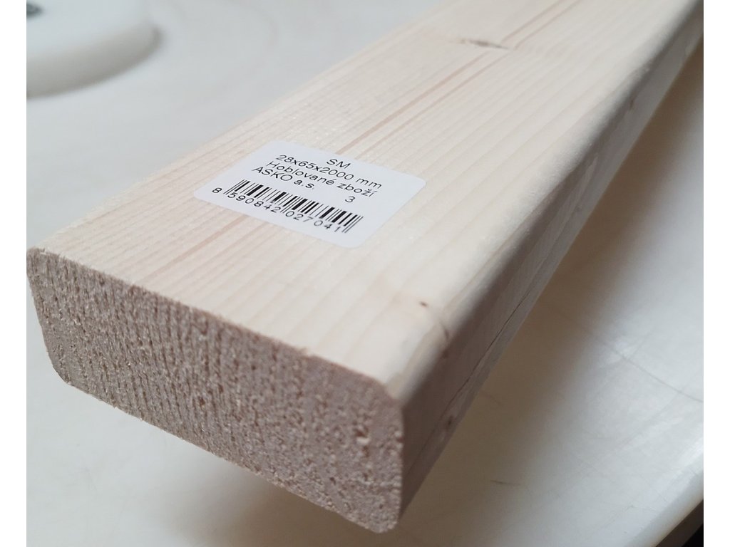 Hranolek SM 28 x 65 x 2m hoblovaný 4hrany zaobl. /115,30Kč/ks s DPH