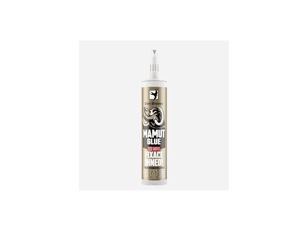 Mamut Glue Hight Tack je moderní vysokopevnostní lepidlo na bázi MS polymerů s okamžitou fixací a mimořádně vysokou počáteční přidržností až 500 kg/m2. Konečná pevnost lepidla po uplném vytvrzení je 22 kg/cm2 (220 000 kg/m2). Výborně lepí dřevo, dřevotřísku, překližku, OSB, MDF, kámen, beton, cihly, keramiku, kov, sádrokarton, sklo, dlaždice a další stavební materiály.