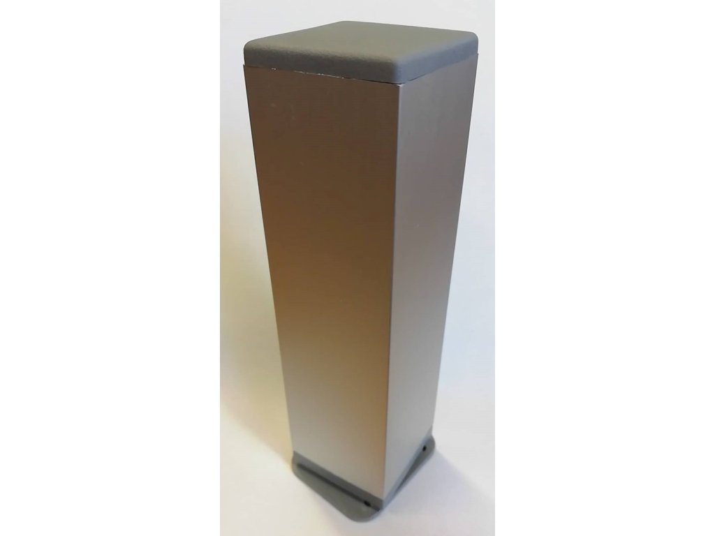 Nábytková noha čtvercová, povrch eloxovaný hliník / koncovka plast šedý.