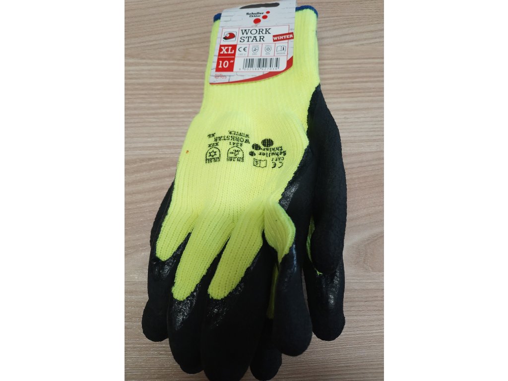Schuller rukavice prodyšné Winterhand 10/XL, zateplené pracovní rukavice s vrásněným povrchem- bezešvý úplet, potažené přírodním kaučukem
