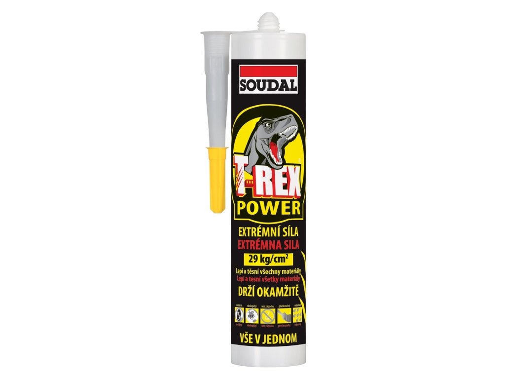 T-REX POWER POWER bílý je universální vysokopevnostní lepidlo s extrémní počáteční přilnavostí. Vytváří vysoce pevný a pružný spoj, odolná proti UV, přetíratelný většinou nátěrů.