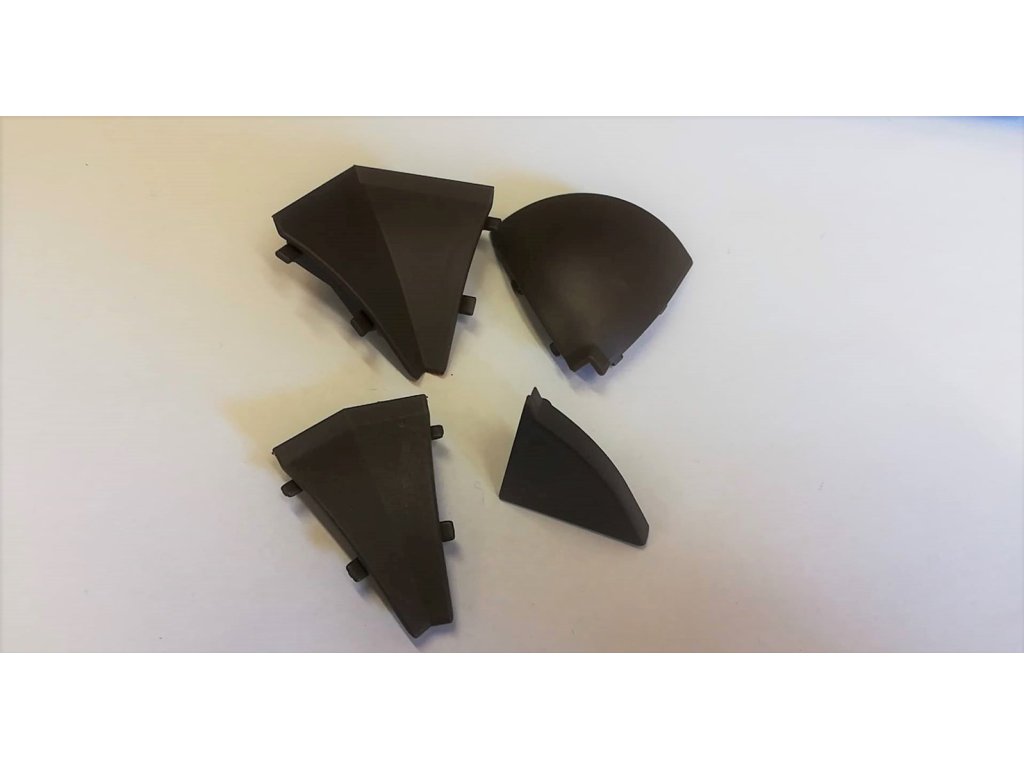 Krytka na těsnící lištu k pracovní desce Egger, roh vnější, barva hnědá tmavá.