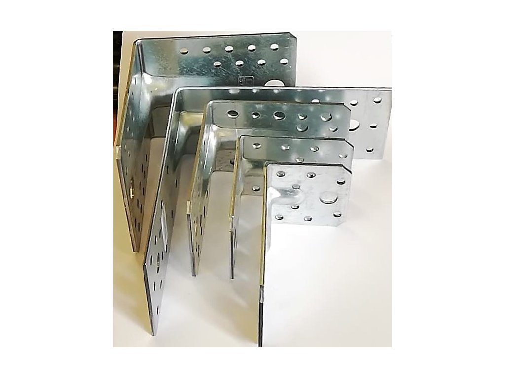ÚHELNÍK s prolisem, ,,L" profily s hlubokým prolisem, které jsou odolné proti ohybu, a s mnoha otvory pro standardní řešení i individuální, zinek.